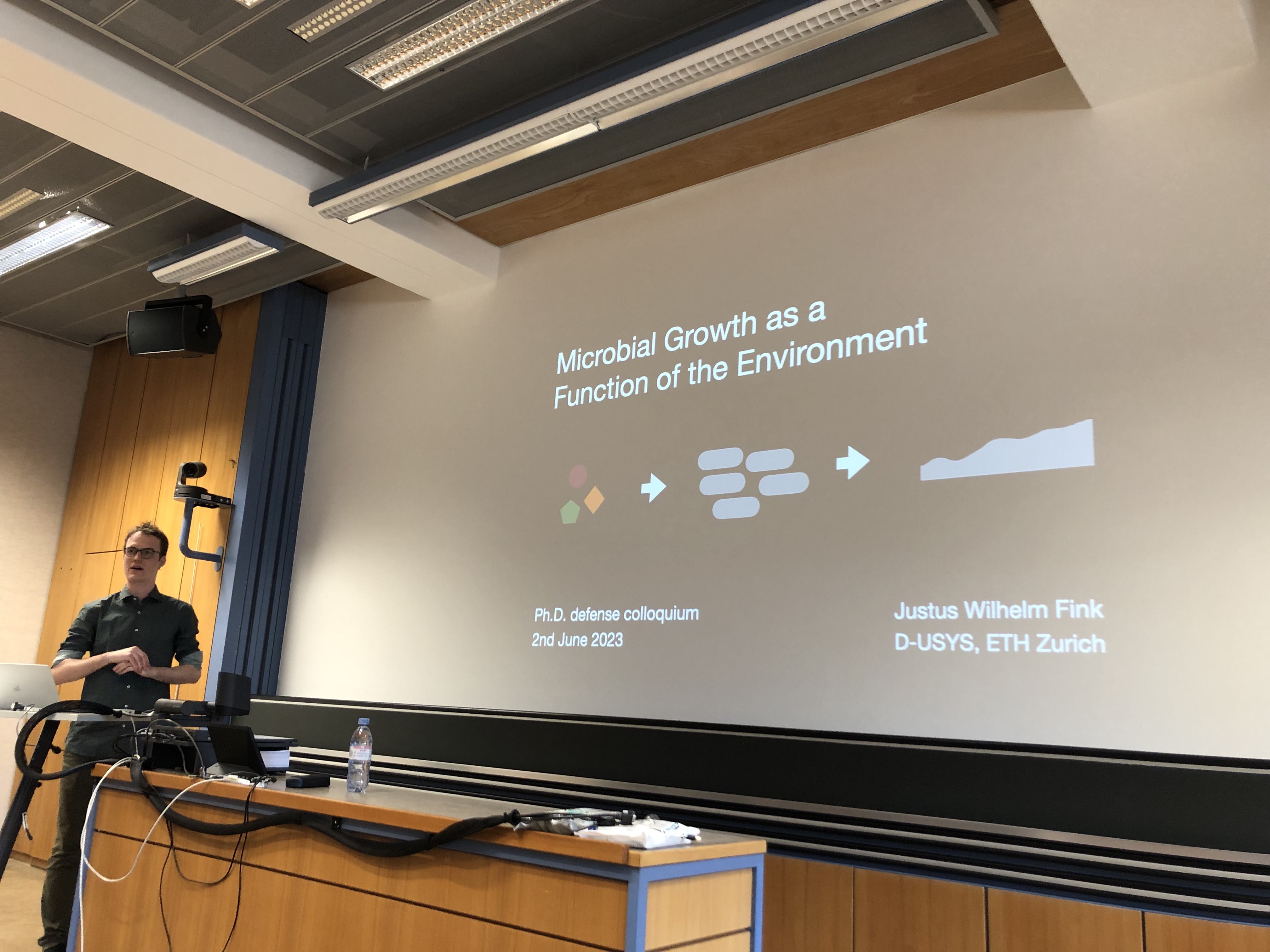 Congratulations to Justus, who successfully defended his Ph.D. thesis at ETH Zurich on “Microbial growth as a function of the environment: Nutrient limitation, selection pressures, and community interaction”!