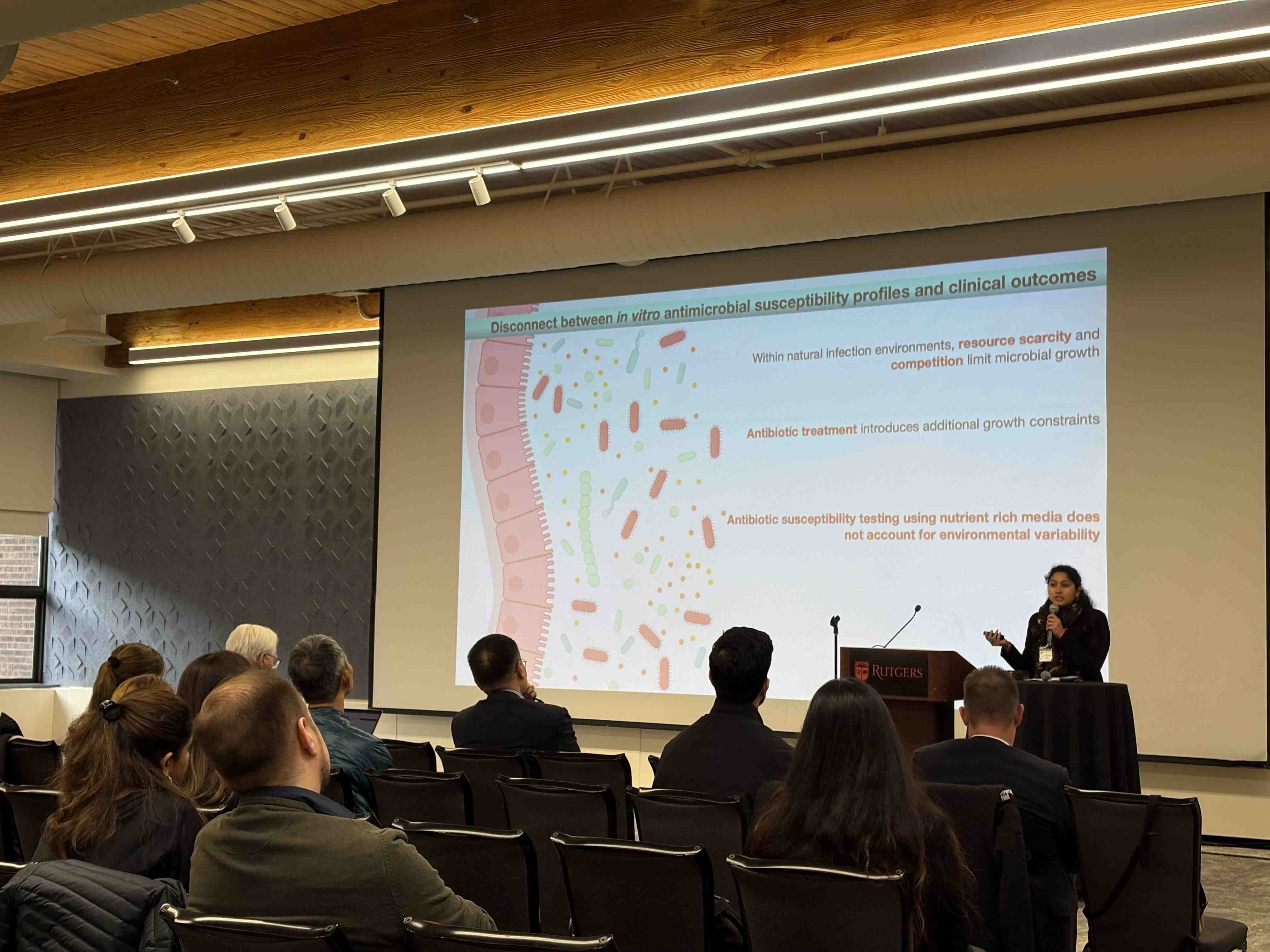 Several members of our lab --- Rachana, Ernesto, Atharv, Duhita, Shivali, and Michael --- attended the 2025 retreat of the Rutgers University Microbiome Program. Rachana and Atharv gave talks and Ernesto and Duhita presented posters, with Duhita winning an award for her poster and Rachana winning the raffle for a free membership to the American Society for Microbiology.