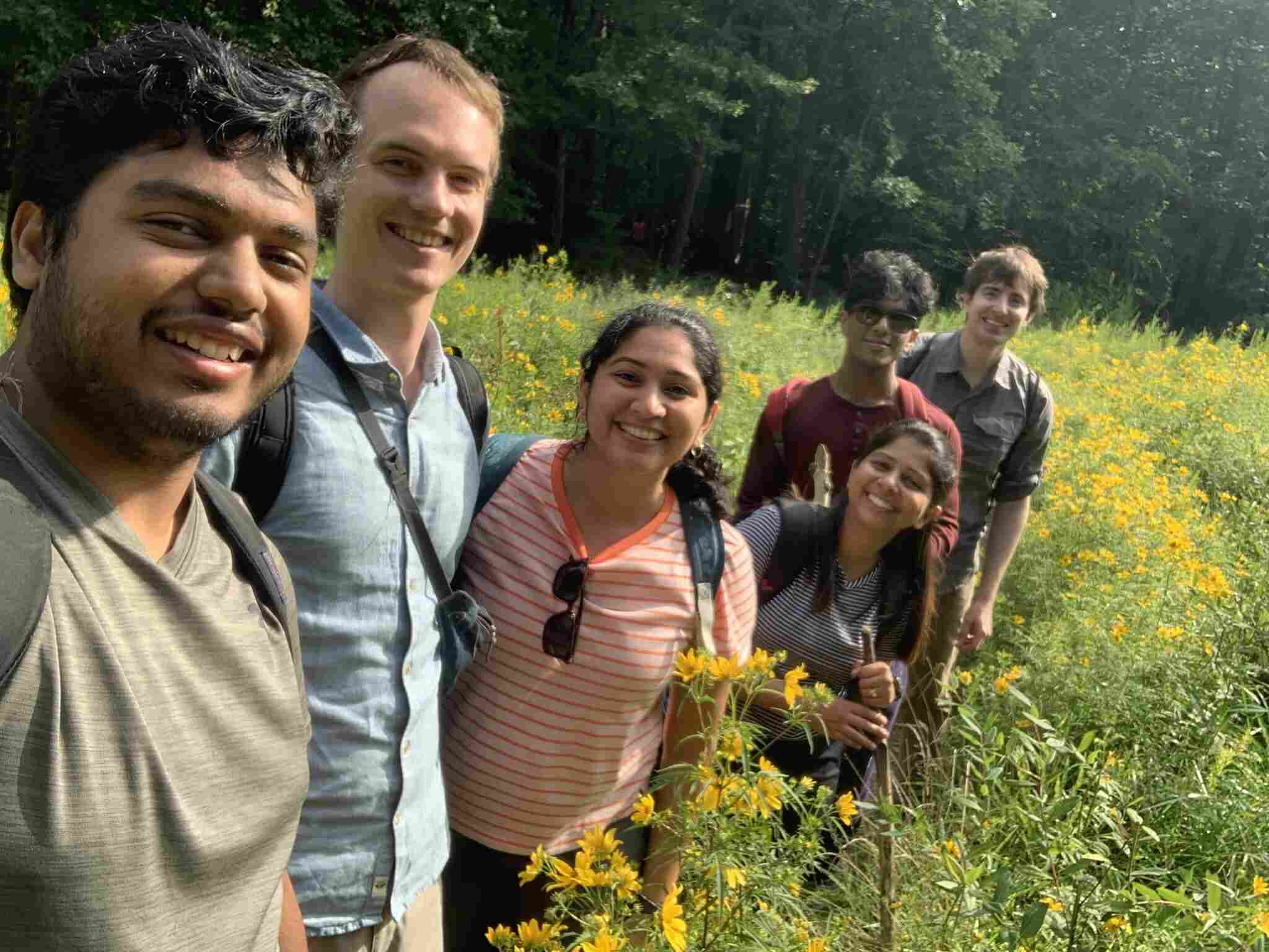 ![]() May 16, 2025 Lab retreat at Duke Farms (Hillsborough, NJ) Left to right: Atharv Jayprakash, Duhita Sant, Michael Manhart, Smruti Dixit, Ernesto Berríos-Caro, Shivali Vanodia, Rachana Rao Battaje |